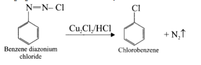 The reaction in which benzene-diazonium chloride is converted to chiorobenzene on heating it with $\mathrm{Cu}_2 \mathrm{Cl}_2 / \mathrm{HCl}$ is known as sand Meyer's reaction.