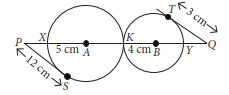 Here, $A S=5 \mathrm{~cm}, B T=4 \mathrm{~cm} \quad[\because$ Radii of circles $]$