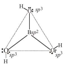 The states of hybridization of boron and oxygen atoms in boric acid $\left(\mathrm{H}_3 \mathrm{BO}_3\right)$ are respectively