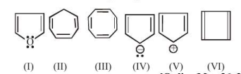 (d) For a compound to be aromatic it must have $(4 n+2) \pi e^{-}$where $n$ is an integer. (III) have 8 and (VI) have $4 e^{-}$. Hence are antiaromatic