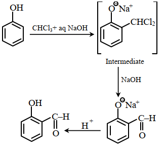 In Reimer - Tiemann reaction, phenol is converted into salicylaldehyde through an intermediate. The structure of intermediate is
