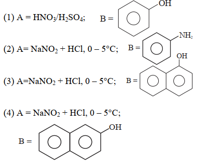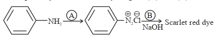 Following is a confirmatory test for aromatic primary amines. Identify reagent (A) and (B)