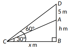 Let $A B$ be the tower of height $h \mathrm{~m}$ and $A D$ be the flagstaff and $C$ be the point on the ground at the distance of $x \mathrm{~m}$ from the tower.