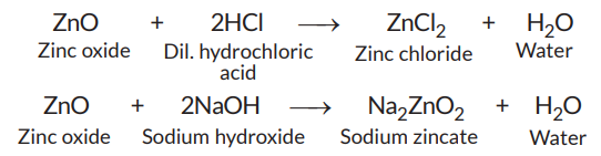 (ii) ZnO reacts both with acids as well as bases to form salt and water. Thus, ZnO is an amphoteric oxide.