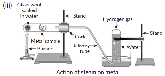 (iii) With the help of a labelled diagram show the experimental set up of action of steam on a metal.