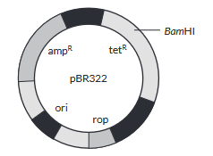 A foreign DNA was ligated at BamH1. The transformants were then grown in a medium containing antibiotics tetracycline and ampicillin.