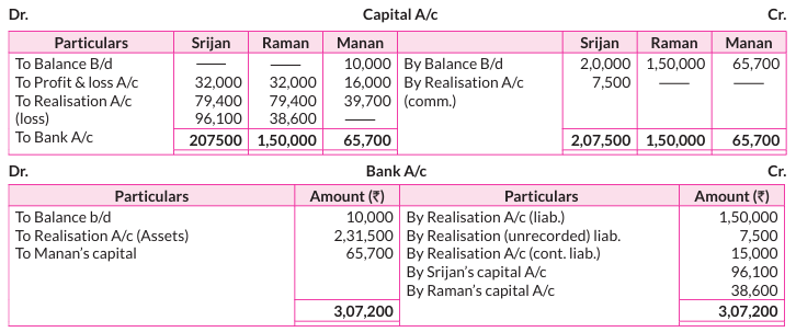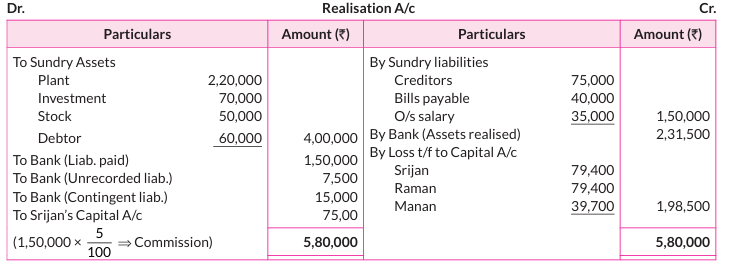 (i) Srijan was appointed to realise the assets and discharge the liabilities. Srijan was to receive $5 \%$ commission on sale of assets (except cash) and was to bear all expenses of realisation.