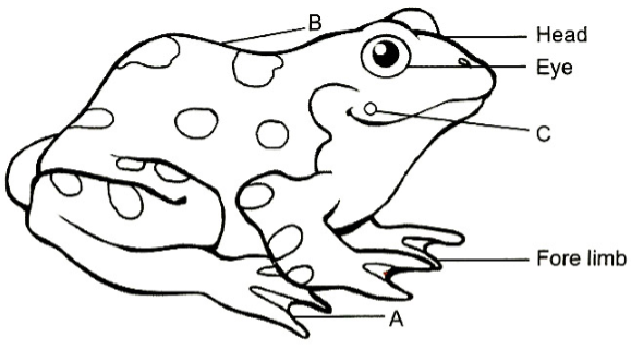 A-Tympanum, B-Trunk, C-Web