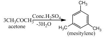 An important reaction of acetone is autocondensation in presence of concentrated sulphuric acid to give the aromatic compound