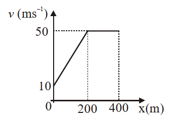 The velocity-displacement graph describing the motion of a bicycle is shown in the figure.