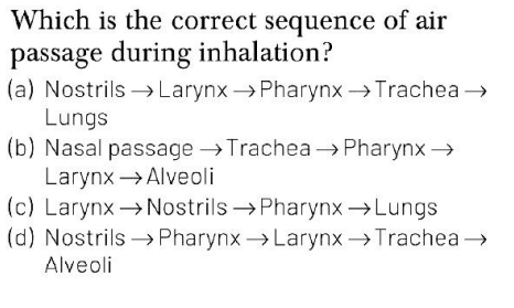 In humans, air passes from nostrils to pharynx, larynx, trachea and then to lungs.