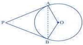 Let us consider a circle centered at point O. Let P be an external point from which two tangents $P A$ and $P B$ are drawn to the circle which are touching the circle at point $A$ and $B$ respectively and $A B$ is the line segment, joining point of contacts $A$ and $B$ together such that it subtends $\angle A O B$ at center $O$ of the circle.