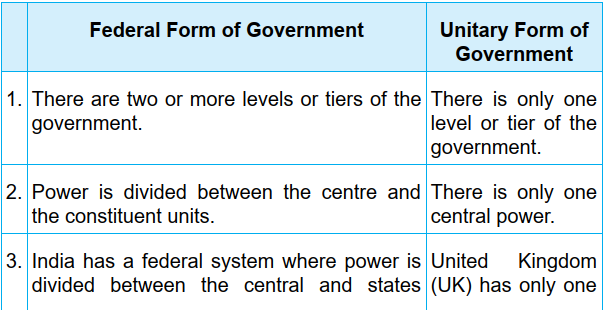 Difference between Federal Form of Government and Unitary Form of Government