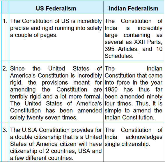 What is the difference between Indian and US Federalism?