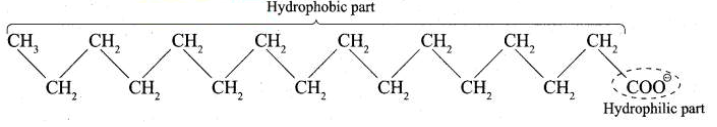 1. A soap or detergent anion consists of a hydrophobic part and a hydrophilic part.
